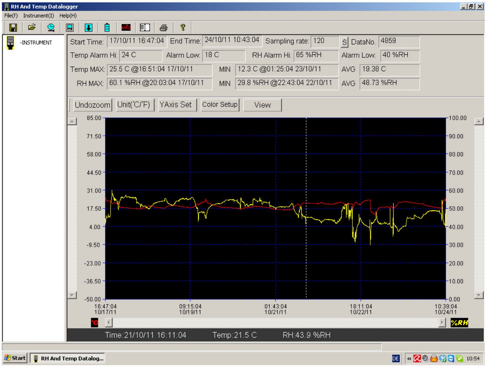 … für die Überwachung von Temperatur & relative Luftfeuchte … mit der mitgelieferten Software können Protokolle in Tabellenform / Grafik erstellt und dargestellt werden …