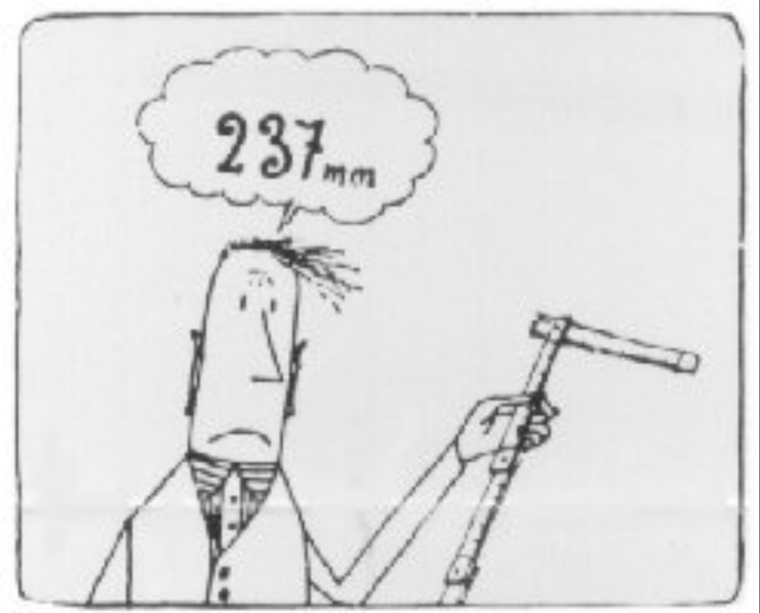 Soll ein Längenmass vom Messplatz zum Arbeitsobjekt übertragen werden, muss man es im Gedächtnis behalten, um es kurz darauf erneut zu der gerade gemessenen Länge zurückverwandeln zu können.